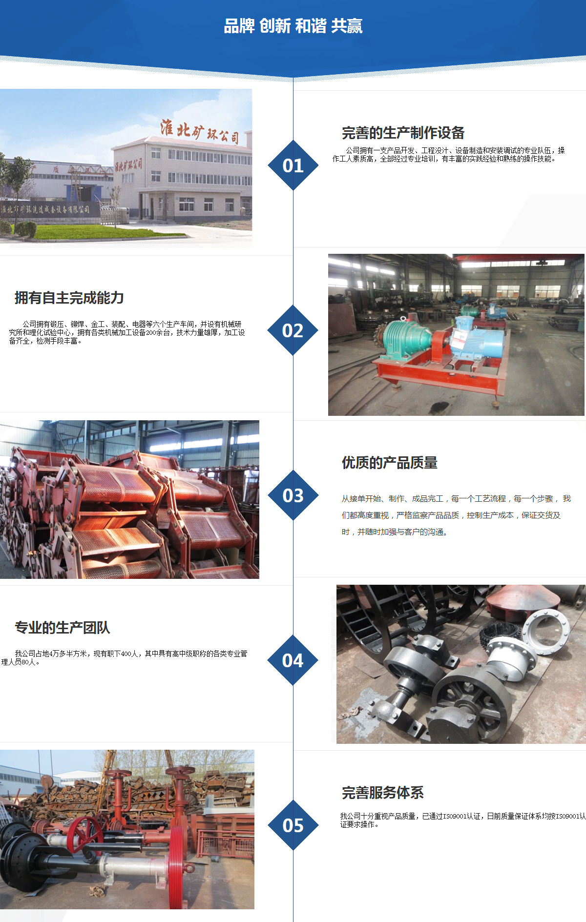 淮北市礦環(huán)洗選成套設(shè)備有限公司(原淮北礦山機(jī)器廠(chǎng))是經(jīng)改制重組后的新型股份制企業(yè),公司座落在皖北經(jīng)濟(jì)中心——淮北市,東鄰京滬線(xiàn),北靠隴海線(xiàn),距徐州民航機(jī)場(chǎng)僅50公里,交通、通訊十分便利。我公司占地4萬(wàn)多半方米,現(xiàn)有職下400人,其中具有高中級(jí)職稱(chēng)的各類(lèi)專(zhuān)業(yè)管理人員80人。 公司擁有一支產(chǎn)品開(kāi)發(fā)、工程沒(méi)汁、設(shè)備制造和安裝調(diào)試的專(zhuān)業(yè)隊(duì)伍,操作工人素質(zhì)高,全部經(jīng)過(guò)專(zhuān)業(yè)培訓(xùn),有豐富的實(shí)踐經(jīng)驗(yàn)和熟練的操作技能。公司擁有鍛壓、鉚焊、金工、裝配、電器等六個(gè)生產(chǎn)車(chē)間,并設(shè)有機(jī)械研究所和理化試驗(yàn)中心,擁有各類(lèi)機(jī)械加工設(shè)備200余臺(tái),技術(shù)力量雄厚,加工設(shè)備齊全,檢測(cè)手段豐富。建廠(chǎng)三十多年來(lái),為煤炭、冶金、電力、市政、輕工、化工、建材等行業(yè)提供了大量的通用設(shè)備和專(zhuān)用設(shè)備,深受用戶(hù)好評(píng),系皖北地區(qū)的機(jī)械加工中心。我公司十分重視產(chǎn)品質(zhì)量,已通過(guò)ISO900l認(rèn)證,日前質(zhì)量保證體系均按ISO900l認(rèn)證要求操作。